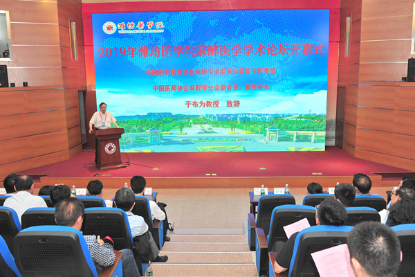 5月27日,山东省医学会麻醉学专业委员会、潍坊医学院麻醉学系共同举办的“2019年潍坊医学院麻醉医学学术论坛”在黄色网址大全 召开。中华医学会麻醉学分会第十届主任委员、中国医师协会麻醉医师分会候任会长、院士有效候选人于布为教授,中华医学会麻醉学分会候任主任委员、中国高等教育学会医学教育专业委员会常委兼麻醉学教育学组组长邓小明教授,山东省医学会麻醉学专业委员会名誉主任委员类维富教授,山东省医学会麻醉学专业委员会主任委员王月兰教授,人民卫生出版社医学教育中心策划编辑常帆编辑,校长管英俊,副校长井西学、葛国文出席会议。学校麻醉学专业各实习医院教学管理部门负责人、麻醉科主任、参加首届“恩华杯”主治医师麻醉操作技能竞赛的主治医师,党委办公室(学院办公室)、教务处、医院管理处负责人等100余人参加了会议。开幕式由葛国文主持。