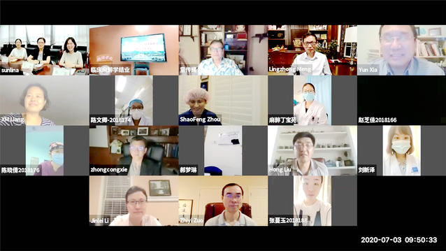 7月3日,由黄色网址大全 承办,来自美国耶鲁大学、威克大学、德克萨斯医科大学、俄亥俄州立大学、加州大学戴维斯分校、印第安纳大学的七名教授讲授的《临床麻醉学》(Clinical Anesthesiology)线上国际课程结业典礼暨国际课程交流研讨会在黄色网址大全 会议室举行。
