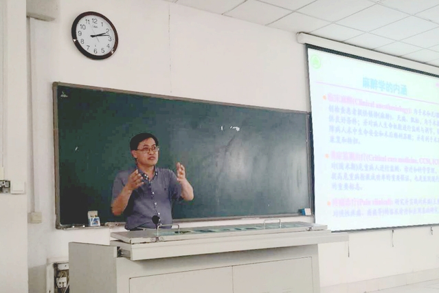 下午,于金贵教授为麻醉学专业学生进行了专业课程《临床麻醉学》首章《麻醉学总论》的授课,临床案例丰富,讲解生动形象,受到了全体学生热烈欢迎。