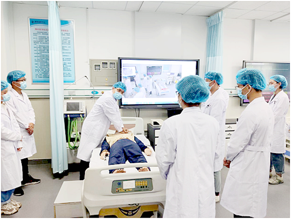 “向着风,拥抱彩虹,勇敢的向前走...”伴着音乐张军桥用自制的抗“疫”视频,拉开了实习前教育的序幕,视频中铿锵有力的誓言、逆行而上的身影生动再现了疫情发生后医护工作者不惧牺牲、冲锋在前的场景,诠释了援鄂医疗队员舍小家顾大家、无私奉献的责任担当与崇高精神。通过讲述自身在黄冈武穴市妇幼保健院抗“疫”期间的心路历程,分享抗“疫”期间与患者的温暖故事,张军桥引导同学们对“麻醉医生在疫情防治中的角色”进行思考。在讲到援鄂归来,“摆摊”普及心肺复苏知识时他说:“作为一名麻醉医生,我认为我有责任对心肺复苏术进行宣传、推广,这样能够及时、有效的挽救更多患者的生命。”朴实的话语、真挚的感情触动了在场的每一位同学。他还讲到成立心跳行动医者联盟志愿队的初心与经历,目前有来自10多座城市的医护工作人员加入队伍在所在地开展公益活动。凭借自己的专业技术在闲暇时间做一些有意义的事情,尽己所能为他人、为社会贡献力量而不求回报,这是张军桥传递给大家的“精神宝典”。会后,张军桥在医学实验实训中心对心肺复苏相关知识、操作流程向同学们进行了进一步讲解、示范。