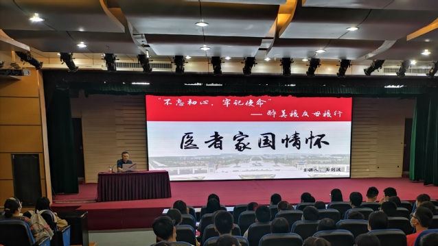 9月8日晚,黄色网址大全 党总支在图书馆演播厅举办“不忘初心、牢记使命”醉美校友母校行主题党日活动,山东大学齐鲁医院麻醉科副主任、党支部书记吴剑波教授受邀来校,以“医者家国情怀”为题为黄色网址大全 学生党员和入党积极分子上了一堂生动的党课。