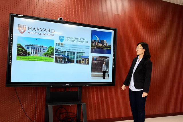 首先,梁映霞博士做了题为《哈佛大学麻省总医院访学汇报》的讲座,结合自身访学工作经历,讲解了神经退行性疾病的国际研究进展和研究热点,介绍了新技术新方法在科学研究的使用。与会老师们认真聆听,并就相关研究热点展开了热烈地讨论。