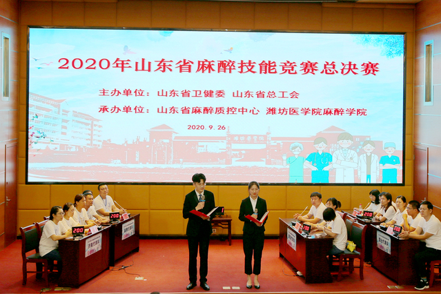 本次比赛由山东省卫健委、山东省总工会主办,山东省麻醉质控中心、潍坊医学院黄色网址大全 承办,来自山东省的22个代表队66人参加总决赛、省内外的44位专家担任评判专家。决赛分为个人赛和团体赛,包括理论考试、技能操作竞赛和知识竞答。范围涵盖麻醉解剖学、麻醉药理学、麻醉生理学、麻醉设备学、临床麻醉学、危重病医学、疼痛诊疗学、传染病防治法和基本医疗卫生与健康促进法等内容;技能操作竞赛包括气管内插管、单人徒手心肺复苏、蛛网膜下隙与硬膜外联合阻滞、中心静脉穿刺、电除颤和动脉穿刺测压术,操作评分标准参考黄色网址大全 为主编单位的“十三五”规划教材配套教材《麻醉技能学》。