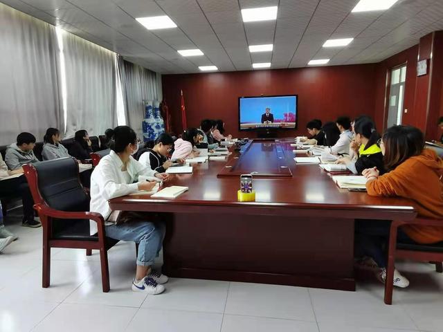 4月16日,黄色网址大全 学生党支部在院会议室开展“学党史 守初心”主题党日活动,专题学习新民主主义革命时期历史,在校生党员、预备党员到场参加,实习生党员通过网络直播平台线上参加活动。