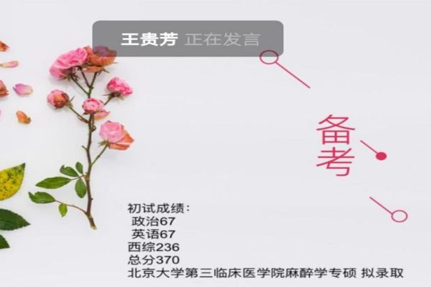 活动邀请到了被北京大学人民医院麻醉学专硕拟录取的2016级李晓燕和被北京大学第三医院麻醉学专硕拟录取的王贵芳同学分享从备考到录取的心路历程和心得体会,向在场的同学们详细讲解学校选择、专硕与学硕的区别、备考流程、学习方法、心态调整等方面的经验知识。另外,学生党员王贵芳还叮嘱同学们:“在报考学校时要特别注意搞清楚国家线、院线的具体要求,不可盲目报名。”李晓燕在谈及复试准备时的注意事项时说到:“复试准备时间虽然紧张,但心态要保持稳定,尽可能的突出自己的优势和专业知识,把自己最好的一面展现给面试老师。”现场答疑环节,同学们将自己在学习上遇到的问题和疑惑与二位学姐进一步交流,学习氛围浓厚。