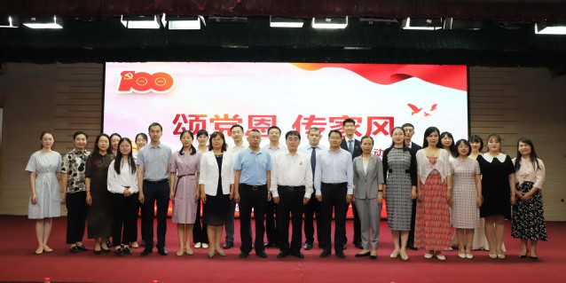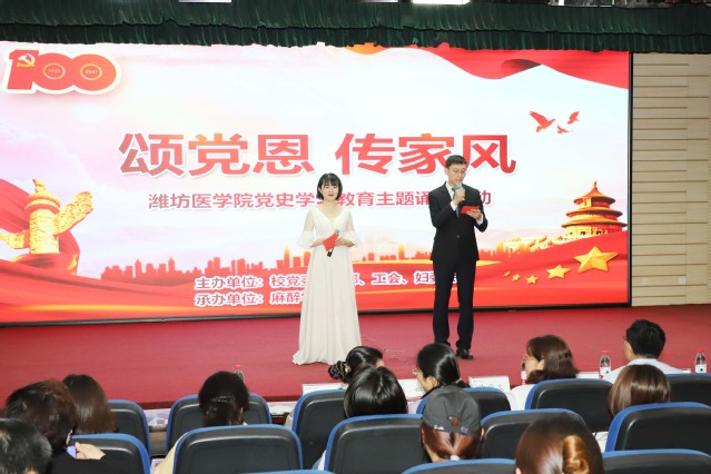 5月31日,由校党委宣传部、工会、妇委会主办,黄色网址大全 承办的“颂党恩 传家风”党史学习教育主题诵读活动在图书馆演播厅举行。校党委委员、宣传部部长田玉胜,各部门、学院负责人与师生代表参加活动。