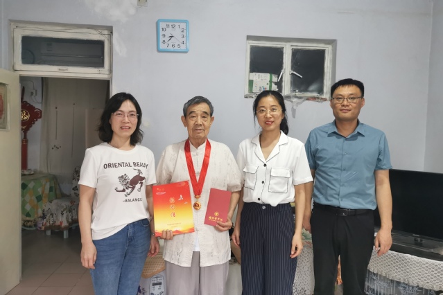 在于建泉老师家中,刘娜等人关切地询问了于老师的身体状况和家庭情况,认真倾听了老党员入党以来的奋斗史与难忘的故事,回忆了在学校工作时的青春年华和光辉岁月,并为于老师颁发“光荣在党50年”纪念章,送上慰问信,感谢他曾经为学校和学院事业做出的贡献以及长期以来对学院各项工作的关心和支持。于老师对学院党总支的关心表示衷心的感谢,并表示今后会继续关心学院的发展,多为学院建言献策,发挥余热。