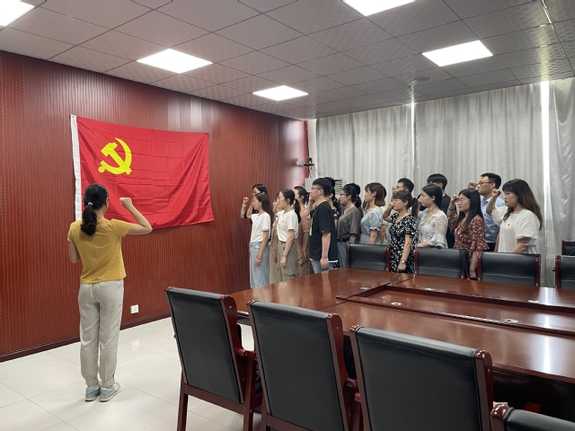 为庆祝中国共产党成立100周年,不断推动党史学习教育走深走实,七一前夕,黄色网址大全 党总支各党支部隆重举行预备党员入党宣誓、正式党员重温入党誓词仪式。