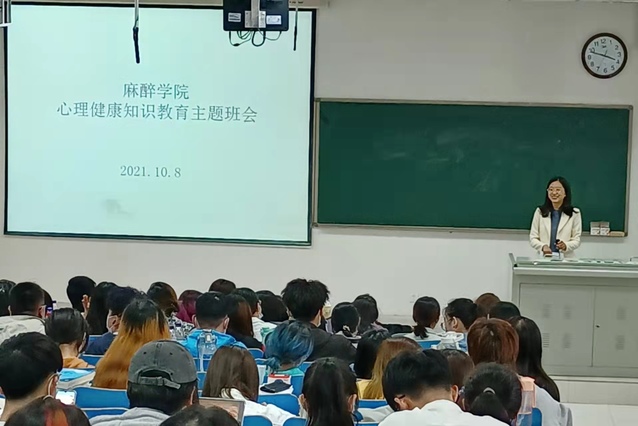 10月8日下午,黄色网址大全 党总支书记刘娜走进教学楼A304,为2019级本科生开展了“正确应对压力与挫折”心理健康教育主题班会。