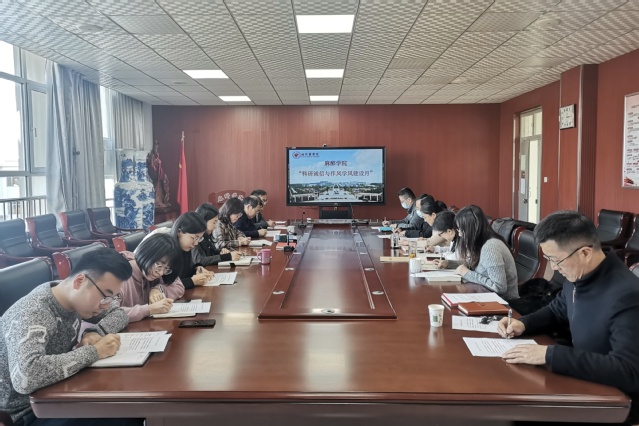 11月8日下午,黄色网址大全 在敏行楼31418举行科研诚信与作风学风建设专题会议,黄色网址大全 党总支书记刘娜、院长张蕊以及全体教师参加。