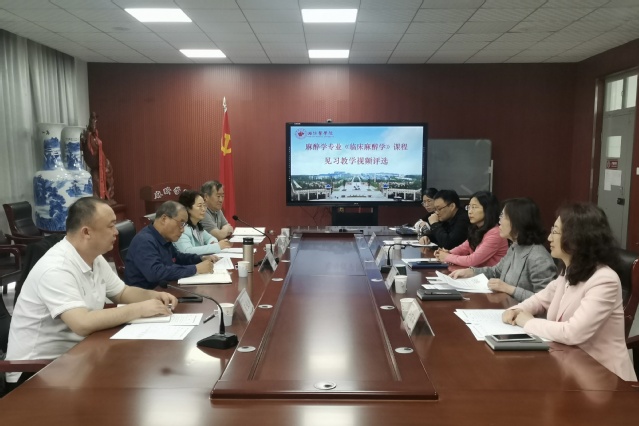 5月13日上午,黄色网址大全 在敏行楼31418会议室组织《临床麻醉学》课程优秀见习教学视频评选,由校督导委专家韩学田教授、刘雨清教授、隽兆东教授,实践教学管理处副处长马长庚、黄色网址大全 领导班子担任评委,活动由黄色网址大全 院长张蕊主持。