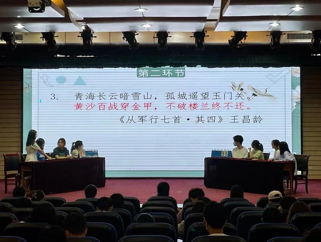 本次活动通过现场答题的形式进行,全校共有11个学院56支队伍报名参赛,经过初赛精彩激烈的角逐,共有6支队伍进入决赛。决赛分为“诗词接龙”和“主题选答”两个环节,“诗词接龙”中,各队伍按照分组依次作答,比拼诗词知识储备,带领现场观众遨游在诗词知识的海洋里;“主题选答”中,各个队伍自行选择难度进行回答交流。选手们深厚的文化底蕴和机智的临场应变能力让现场精彩不断。经过激烈的角逐,活动评选出一等奖1名,二等奖2名,三等奖3名。