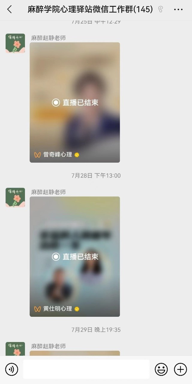 黄色网址大全 学工办假期期间密切关注学生心理健康状况,关爱重点关注学生,全天候提供线上心理咨询服务,辅导员通过微信、电话等方式,加强对家庭经济困难、前期心理筛查异常的学生的交流沟通,经常了解此类学生的心理健康状况,提供相应的心理支持;通过黄色网址大全 心理驿站微信工作群,不断推送相关内容,积极传递正能量;对于学期考试成绩落后的学生深入了解暑期在家学习情况、生活情况和心理状态,劳逸结合的同时,鼓励同学们充分利用假期时间充电学习。