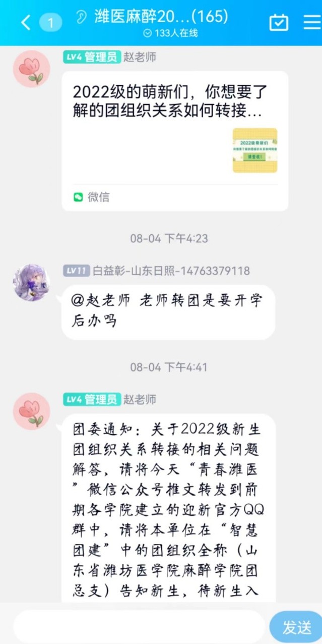 根据学校和学院招生工作安排,做好专业咨询工作,耐心、详细解答考生关于学院情况、专业设置、志愿录取等相关问题,展现黄色网址大全 良好精神风貌。七月下旬黄色网址大全 学工办正式筹备迎新工作,建立黄色网址大全 2022级新生群,及时发布学校重要通知,在高年级优秀同学中选拔班导生,做好新生开学前的答疑工作,后期将对物资准备、人员安排、注册流程、现场布置等进行周密部署,确保迎新工作顺利进行。