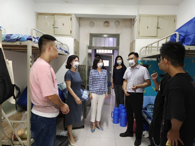93日,学院党总支书记刘娜、院长张蕊、副书记李洪刚以及全体辅导员深入宿舍看望入学新生,深入了解新生宿舍生活基本情况、帮助新生尽快适应大学生活、及时发现与解决新生入学后遇到的困难,了解新生入校感受并送去学院对全体新生的问候与关怀。