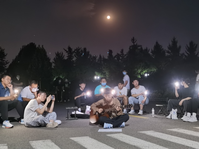 活动伊始,同学们以班级为单位依次作自我介绍,阳光自信、热情大方的展现自己,分享家乡的历史文化、风土人情,从云南腾冲到黑龙江大庆,从宁夏银川到山东威海,天南海北的新同学,为了同一个梦想相约麻醉,进一步增强了彼此的相互了解,增进了同学们的感情。随后,各班以独唱、合唱、舞蹈、相声等节目将联欢会的氛围带入一个又一个高潮。“夜空中最亮的星,请指引我靠近你”,何正霖同学倾情演唱《夜空中最亮的星》,歌声嘹亮,宛转悠扬,感谢遇见,令人回味;冯丽萍同学带来的的跆拳道表演,一招一式尽显舒展豪放、洒脱自如,彰显出跆拳道的无穷的魅力和深刻的内涵;张建文和陈正阳同学俯卧撑比赛,动作标准,展现出青春的活力与坚韧不拔的毅力,激发起在场同学们的运动热情;李卓群同学吉他弹唱,一首《成都》,引起在场同学的共鸣,遥寄思乡之情,祝愿家国美好......活动现场穿插着击鼓传花、丢手绢等游戏互动环节,同学们沉浸在热闹欢乐的节日氛围中,精彩的节目赢得了阵阵掌声,热闹非凡。皓月当空时,同学们纷纷拿起手机记录下这月圆时刻,分享给身边的朋友或是远方的家人,寄予美好的祝愿。