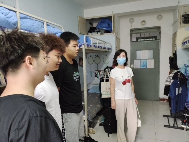 “假期有什么计划吗?”“最近跟家人打电话了吗?”“学习和生活上有没有困难?”走访期间,学院领导与同学们亲切交谈,不仅细心询问了住宿、就餐、学习等情况,还认真倾听了同学们的意见和建议。学院领导和老师跟同学们强调了宿舍安全与卫生的重要性、宿舍和谐氛围营造的重要性,希望大家要重视宿舍消防安全,自觉遵守文明行为规范,保持良好的习惯,积极营造温馨和谐的宿舍氛围,平安健康过国庆。