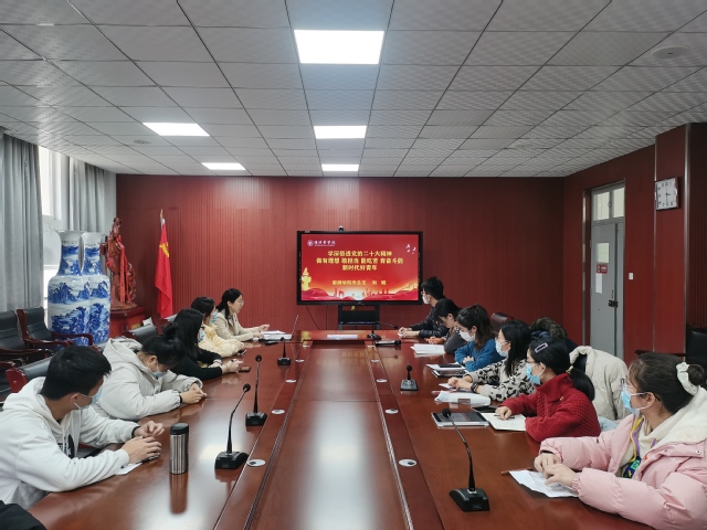 12月8日下午,黄色网址大全 党总支书记刘娜在敏行楼31418会议室为学生党支部党员、入党积极分子代表宣讲党的二十大精神。