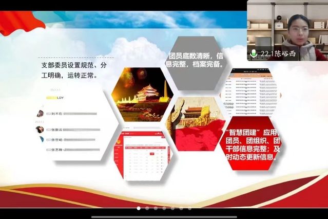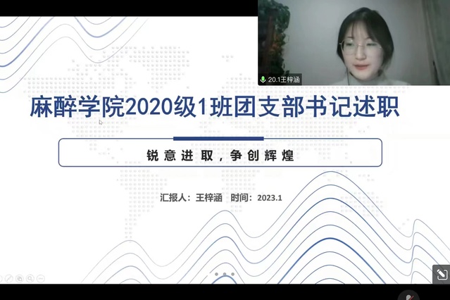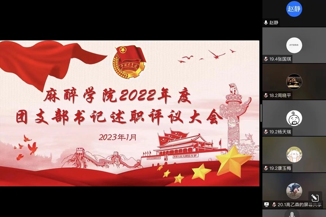 会上,学院本科生和研究生23个团支部的支部书记聚焦团支部工作,通过线上汇报和PPT展示相结合的方式,从履行职责情况、存在的主要问题及原因和2023年工作目标三个方面进行述职汇报,并以班子建设、团员管理、活动开展、制度落实和作用发挥为基点逐一介绍了本团支部的基本信息、人员架构、落实“三会两制一课制度”、主题团日活动开展等情况。最后,学院团总支和学生代表结合各团支部书记述职情况以及日常掌握的工作情况对23名团支部书记进行考核评分。