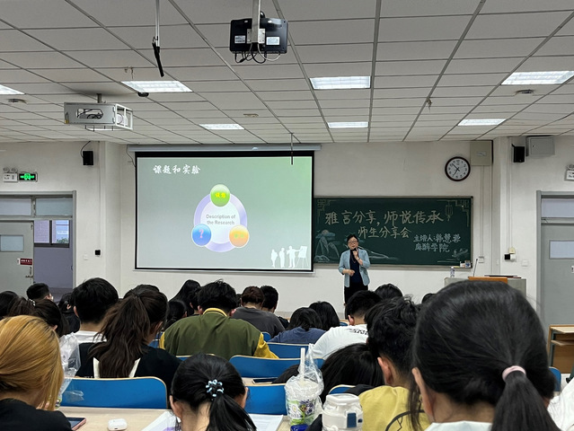 5月11日晚,黄色网址大全 于浮烟山校区教学楼A305教室举办“雅言分享,师说传承”师生分享会。黄色网址大全 全体2022级学生参加活动。