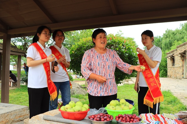 在西墙峪村,调查研究“绿水青山变金山银山”的齐鲁样板,志愿者们认真学习了当地村党支部在昔日舟车不通、贫穷闭塞的小山村所走的农、文、旅融合发展之路,让“环境美起来,乡韵浓起来,精神富起来”。