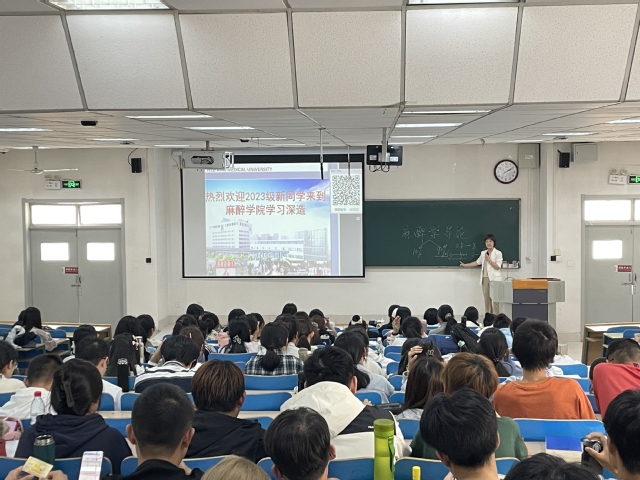 10月9日下午,在教学楼A305,黄色网址大全 院长张蕊教授围绕麻醉学专业思想教育主题,面向2023级麻醉学全体本科生展开了生动精彩的教学,副院长孙丽娜、新生辅导员到场学习