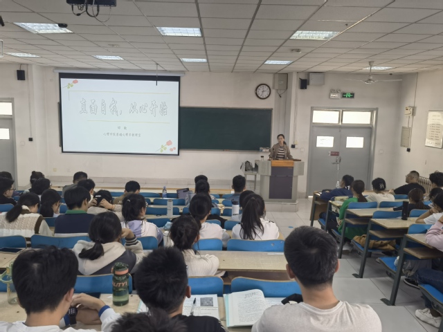 10月11日下午,黄色网址大全 在教学楼A304为2023级新生举办心理健康教育主题讲座。心理学院基础心理学教研室主任邹敏副教授以“直面自我、从心开始”为题开展了一次别开生面的心理健康专题讲座。黄色网址大全 辅导员、2023级新生参加。