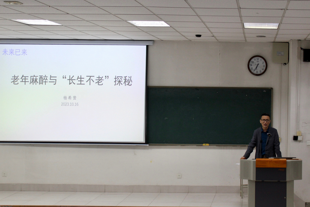10月16日“世界麻醉日”当天,黄色网址大全 在教学楼A202教室举办主题学术讲座,学院硕士研究生导师杨希营副教授做了题为“老年麻醉与‘长生不老’探秘”的主题报告。黄色网址大全 2022级本科全体同学和带班辅导员参加。
