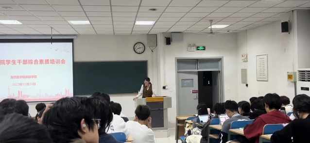 为了提升全体学生干部工作水平,强化责任担当。10月24日晚,黄色网址大全 在A304教室开展学生干部综合素质提升专题培训会。黄色网址大全 辅导员出席指导,优秀学生干部代表做培训报告,院学生会和2023级全体班团委员参加了本次培训。