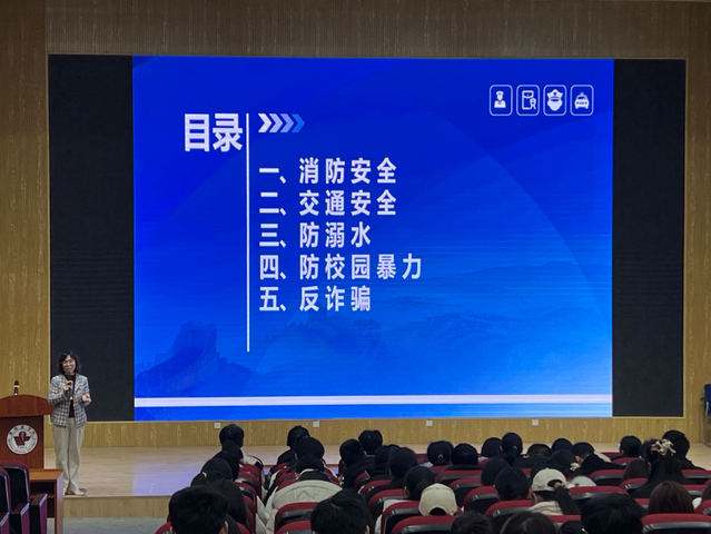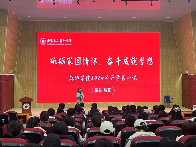 张蕊以“砥砺家国情怀,奋斗成就梦想”为题,围绕学校、学院以及麻醉学学科发展,从2023年的回顾与感想、2024年的憧憬与展望、志存高远成就梦想三个方面进行了丰富细致的讲解。张蕊与在座同学共同分享了学院在国家一流本科专业、国家一流本科课程和山东省一流本科教材建设,人才培养和团队建设等方面取得的突出成果,大大增强了同学们学好专业的自豪感和信念感;带领同学们重新认识了学校成功更名医科大学对学生自身发展带来的重要机遇,并介绍国家对麻醉学专业人才的紧急需求现状,提振了同学们躬身入局的精气神,为同学们的就业创业前景指明了方向。张蕊勉励大家珍惜朝气蓬勃的青春时光,脚踏实地、开阔视野,立大志、成大才,不忘报效祖国人民,并寄语学子们认真学习理论知识,锻炼临床技能,要像大树一样深深地扎根在医学知识的海洋,把枝叶展向天空,去追寻自己的梦想。最后,张蕊重点强调了安全注意事项,从消防安全、交通安全、防溺水、防校园暴力、防诈骗五个方面普及安全知识,教育同学们安全用电、规范使用电动车,引导学生增强安全责任意识,筑牢校园安全防线。