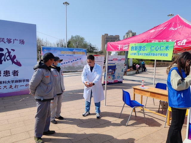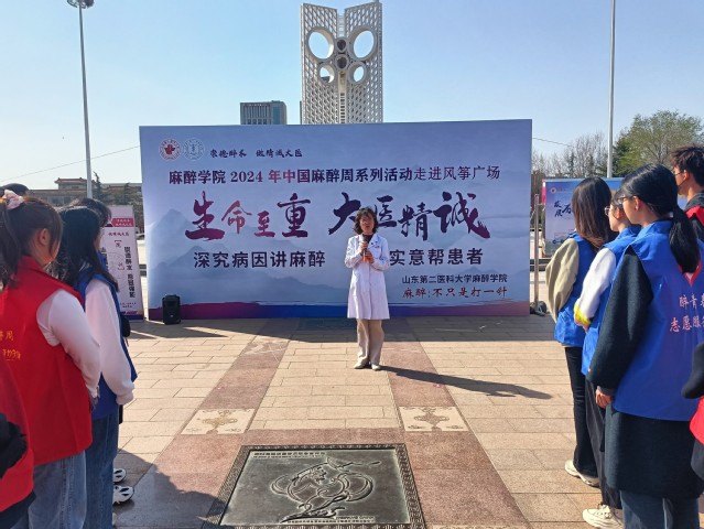 “医+宣讲”普及麻醉知识。山东省医学会麻醉学分会副主任委员、山东省医药教育协会麻醉专业委员会主任委员,黄色网址大全 院长张蕊教授做开场发言,并结合中国麻醉周主题开展麻醉知识宣讲。“麻醉技术是能为手术患者提供无痛、安全、舒适化手术条件的必要保障。”张蕊向居民和在场师生介绍到,“老百姓安全、舒适和健康的背后,往往是麻醉医生在后台保驾护航”。随着现代麻醉技术的突飞猛进,麻醉早已不是打一针那么简单。张蕊勉励各位师生党员通过此次活动,认真宣传有关应急抢救、重症治疗、疾病预防、舒适化医疗、疼痛诊疗和创新诊疗等麻醉知识,努力锻炼自身本领,拓宽知识应用渠道,更好地参与到服务全民健康的事业中去。