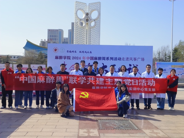 2024年3月25-31日,恰逢中国麻醉周(每年3月的最后一周)。为提高公众对麻醉学科的认识,增强公众的急救意识和能力,3月31日,黄色网址大全 党总支与实验实训中心党支部开展联学共建主题党日活动,深入风筝广场,面向社会公众开展多种形式的“医+”志愿服务活动,进一步锤炼党性修养,凝聚奋进力量