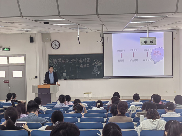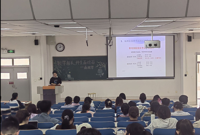为了激发学习积极性,促进师生交流,让同学们更好掌握病理学的学习方法,4月19日中午,“教学相长”——师生面对面之病理学座谈会在教学楼A411举办。此次座谈会由黄色网址大全 学生会学习交流部主办,黄色网址大全 学生会学风建设部、医学影像学院学生会学习部、口腔医学院学生会学习交流部和临床医学院2022级学生会学习部共同承办。病理学教研室教师代表李文通、张红霞、赵琳茹、徐灵博出席座谈会,来自黄色网址大全 、医学影像学院、口腔医学院、临床医学院近200名学生积极参与。