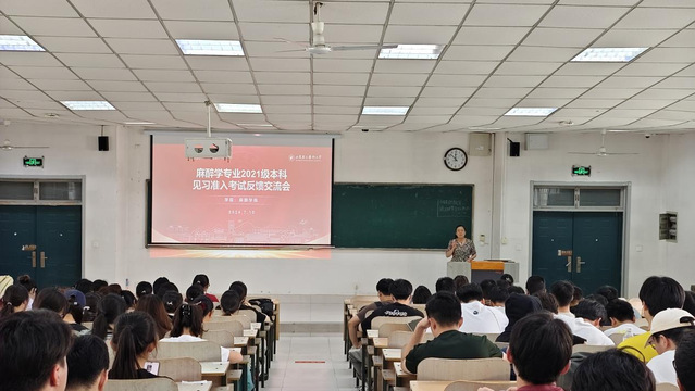 7月10日,黄色网址大全 在A103教室举行麻醉学专业2021级本科见习准入考试反馈交流会,见习准入考试考官代表和2021级4个班学生参加。