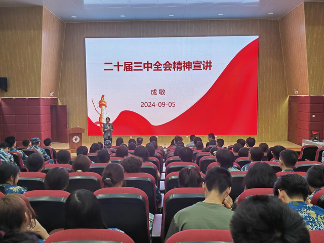 首先,成敏详细介绍了党的二十届三中全会的基本情况、指导思想、核心议题及总目标,阐述了此次会议的召开对于党和国家事业发展的重大历史意义,以及在新时代背景下学习贯彻全会精神的极端重要性和紧迫性。
