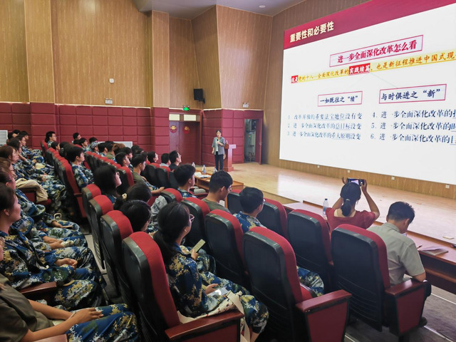 随后,成敏围绕“进一步全面深化改革、推进中国式现代化”这一主题展开了深入浅出的讲解。一是结合当前国内外形势,从“为什么改,改什么,怎么改”三个层面,分析了全面深化改革面临的机遇与挑战;二是介绍了中国式现代化的独特内涵和鲜明特征,特别指出中国式现代化是立足中国国情、符合中国实际、体现中国特色的现代化道路;三是紧密联系学校人才培养、科技创新重点任务,引领师生党员全面学习领会党和国家在深化教育、科技、人才发展体制机制改革等方面的科学规划和深远布局。