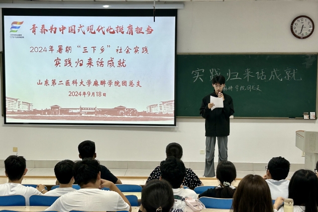 汇报会上,学院立项的2支校级重点团队和4支院级重点团队以及16名“返家乡”社会实践优秀志愿者逐一进行汇报,分享实践过程中的收获和体会。校级团队“醉青春”健康中国志愿服务队由学校党委委员、统战部部长刘汉波带队前往青岛市崂山区沙子口街道开展“投身乡村振兴,助力健康中国”志愿服务活动。充分发挥医学专业优势,提升基层医疗服务水平、关爱社区群众健康,以青春建功的实际行动为健康中国贡献一份力量;校级团队“醉青春”关爱儿童志愿服务队走进山东省潍坊市潍城区城关街道曹家巷社区针对社区儿童开展社会实践活动,旨在提高儿童各项素质,保障儿童健康发展;2023级四支团支部志愿服务队分别前往祥和苑社区、风筝博物馆、白浪河湿地公园、颐年园养老院开展社区治理、文化弘扬、环境美化、金晖助老等活动。同学们立足实际,突破创新,关注社会热点,紧跟发展动态,在社会实践中“受教育、长才干、作贡献”。