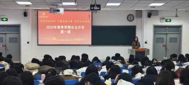2月25日,黄色网址大全 党总支副书记、院长张蕊在A205为同学们讲授新学期“安全第一课”。辅导员和2022级全体学生参加。