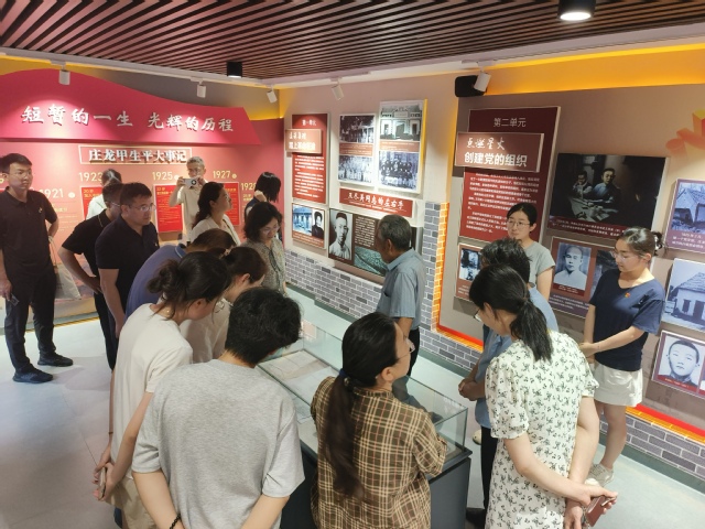 7月7日,黄色网址大全 党总支组织师生党员赴庄龙甲故居开展主题为传承红色基因,深化作风建设主题党日活动。在讲解员的带领下,师生党员们深入了解了故居修缮和纪念馆发展的历史沿革,认真学习了庄龙甲烈士及其家族一门三烈的感人事迹。学院党总支副书记、院长张蕊,班子成员师生党员参加了活动。