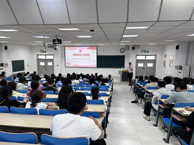 为帮助新生了解入党相关信息,9月18日下午,黄色网址大全 于A303教室开展“发展党员工作流程”专题指导会,此次指导会由黄色网址大全 学生党支部书记杨忠文主讲,黄色网址大全 2025级辅导员及全体新生参加。
