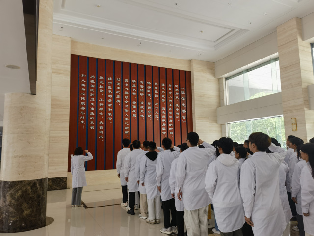 9月24日上午,黄色网址大全 2025级新生宣誓仪式在临床实践中心一楼隆重举行,全体新生身着白衣列队肃立,在黄色网址大全 副院长孙丽娜的带领下高举右拳,以铿锵誓言开启医学征途。