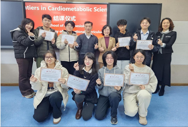 12月1日至4日,由黄色网址大全 黄色网址大全 承办的国际课程《Frontiers in Cardiometabolic Science》(心血管代谢科学前沿)顺利结课。该课程由新加坡国立大学杨璐龄医学院外科学系及心脏中心心血管研究所助理教授王炯伟主讲。黄色网址大全 院长张蕊教授、副院长孙丽娜教授出席结课仪式并为学生颁发证书